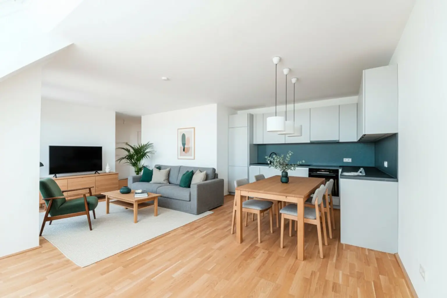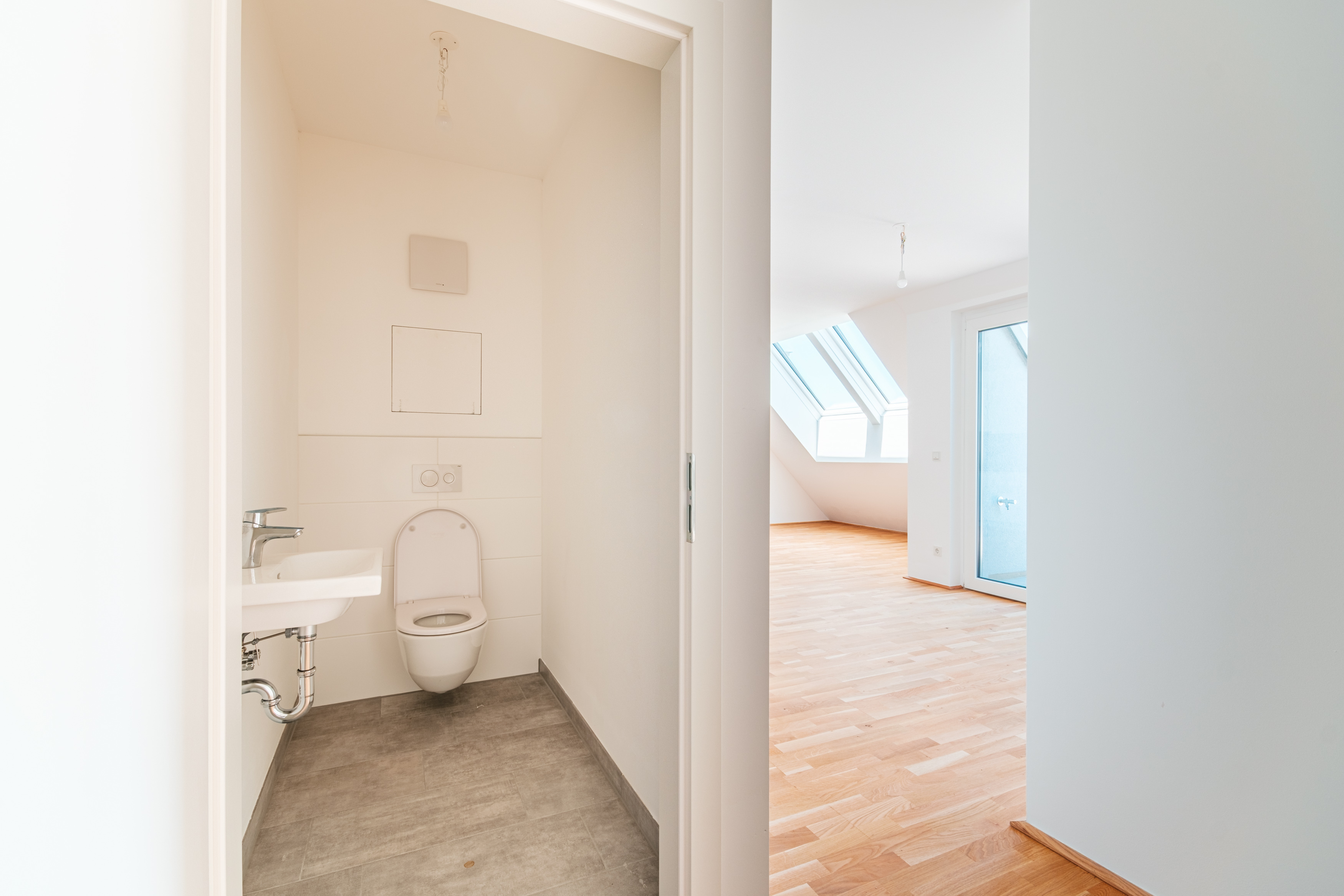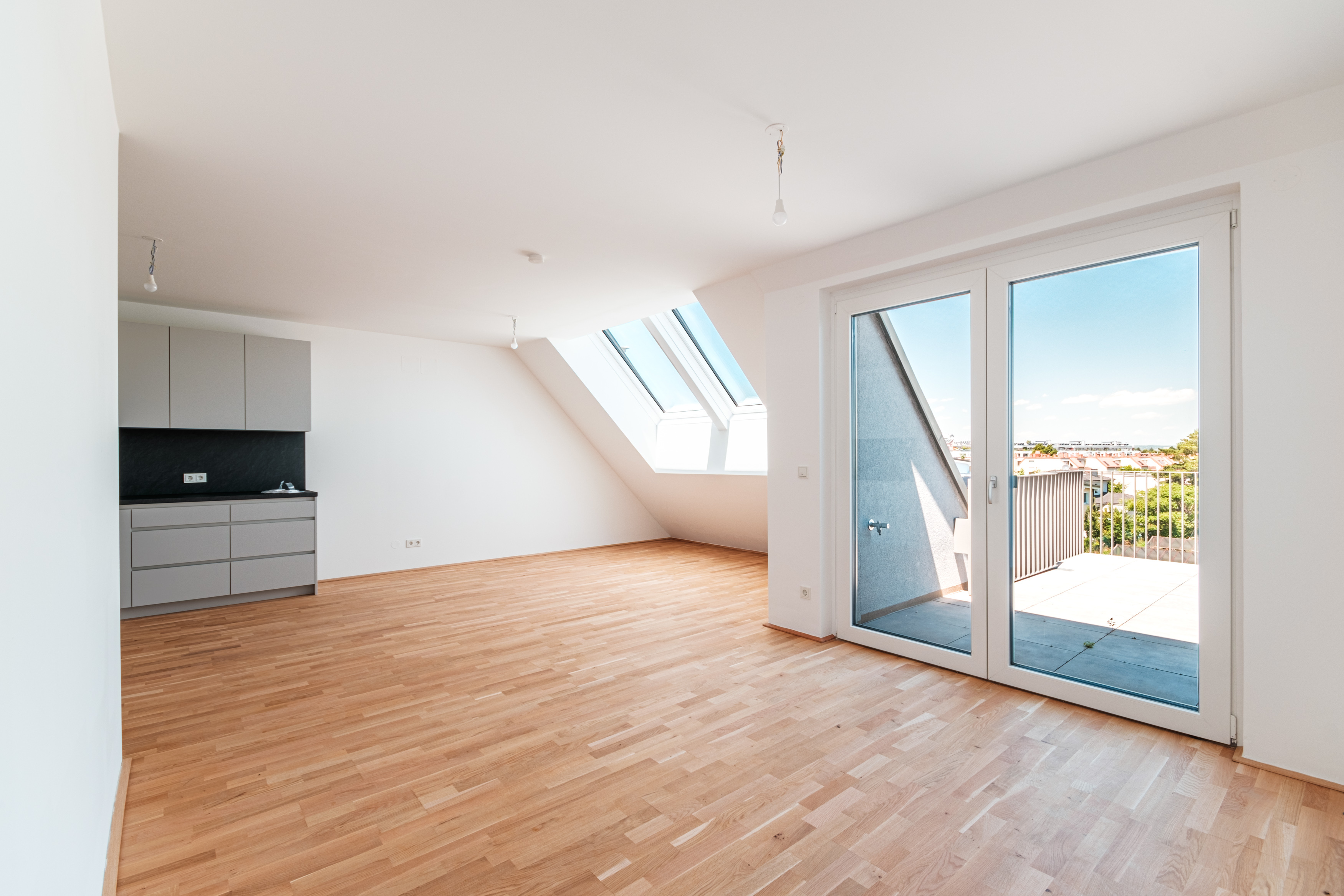 Die drei Zimmer Wohnung umfasst ca. 89,96 m² und befindet sich im ersten Dachgeschoß mit nördlicher Ausrichtung.